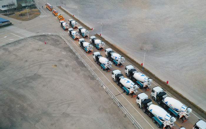 凯发k8一触即发新能源搅拌车延续强势表现。排列整齐、蓄势待发,即将奔赴江苏南通,助力当地中石油项目。