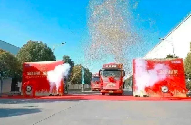 伴随着锵锵锣声,满载塔机与升降机产品的车队“长龙”分别从两大基地鸣笛启程,奔赴全球各地建设一线,助力客户红火开市。
