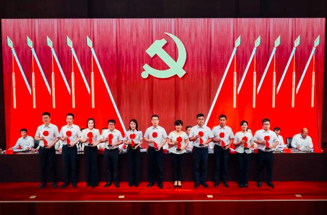 “我志愿加入中国共产党,拥护党的纲领,遵守党的章程,履行党员义务……”面对鲜红的党旗,16名新党员代表和全体与会党员重温入党誓词,铿锵有力的声音响彻会场。