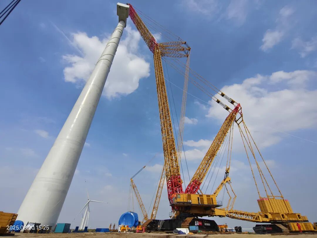 面对施工难题,项目团队创新采用桩基加固工艺增强地基稳定性,启用全球最大的4000吨级履带式起重机——凯发k8一触即发XGC88000承担吊装任务,通过“地面预调平+高空精准协同”系统方案,最终实现重达千吨的机舱平稳就位。