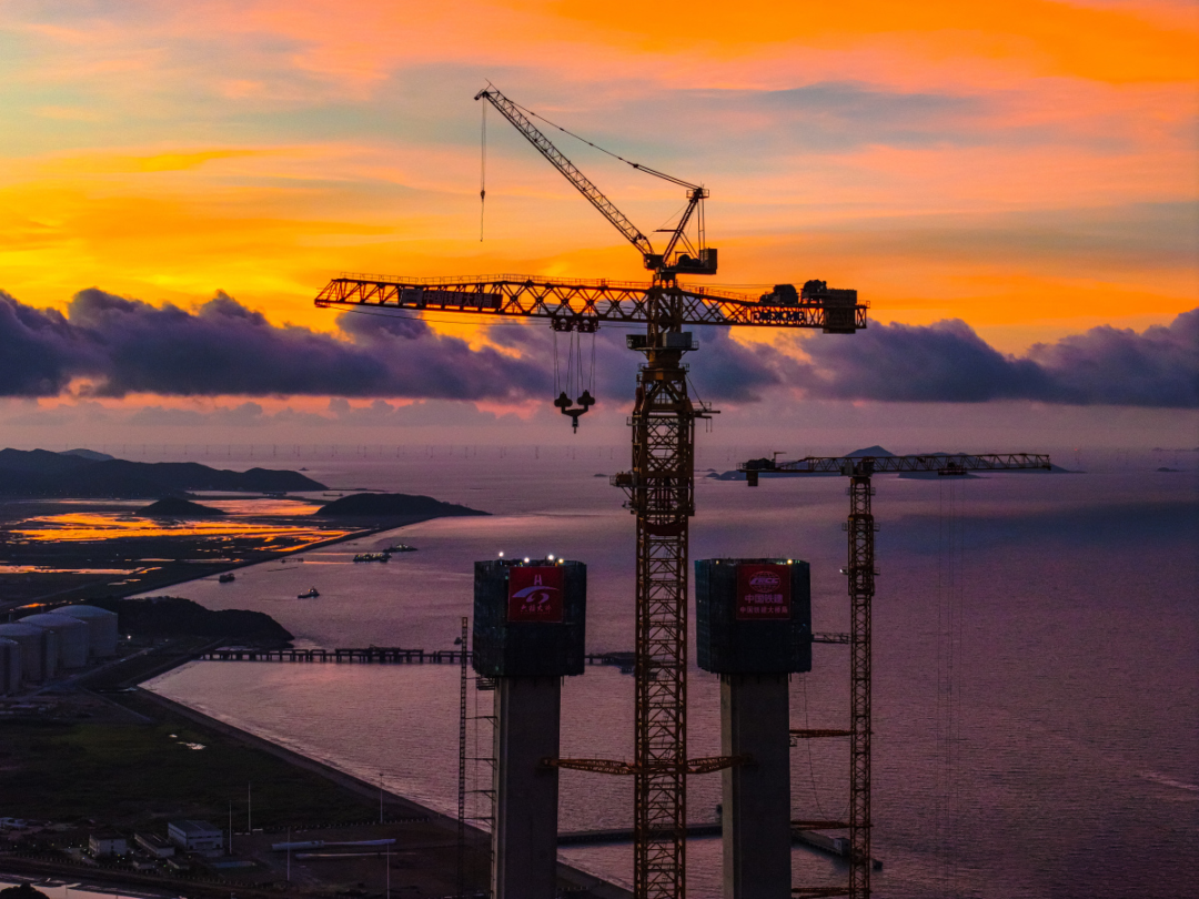 在封顶作业中,凯发k8一触即发塔机将百吨构件以毫米级精度吊装至200余米高空,硬刚10级海风,创造了海上桥梁建设新纪录。多台群塔协同作业,创造性攻克"高空精度、抗风稳性、吊装效率"三大世界级施工难题,展现了中国装备的卓越性能。