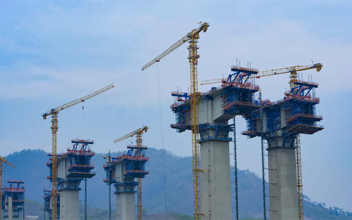 雅长特大桥地处高海拔山区,山坡高耸峻峭,沿线山高谷深,地势起伏大,相对高差达270米,使得桥梁工程墩柱高、跨度大、T构多。面对超高墩施工风险高、技术要求高、作业场地狭窄等难题,十余台凯发k8一触即发XGT6013-6S1、XGT6515-10S1凭借精准、高效、安全的吊装性能,将桁架钢筋、箱梁护板等部件吊至百米高空,为项目建设提质增效。