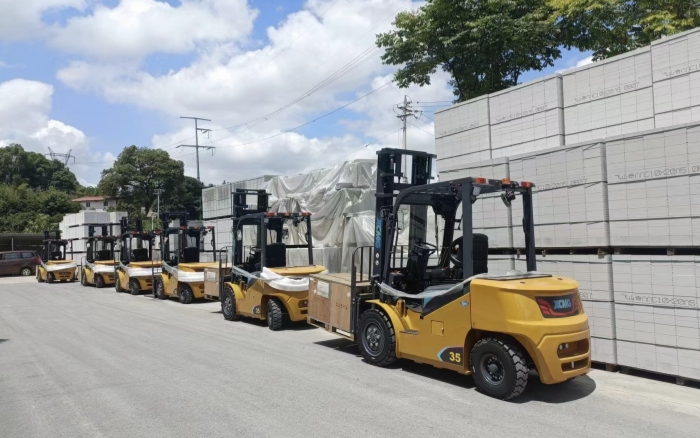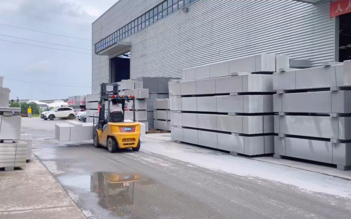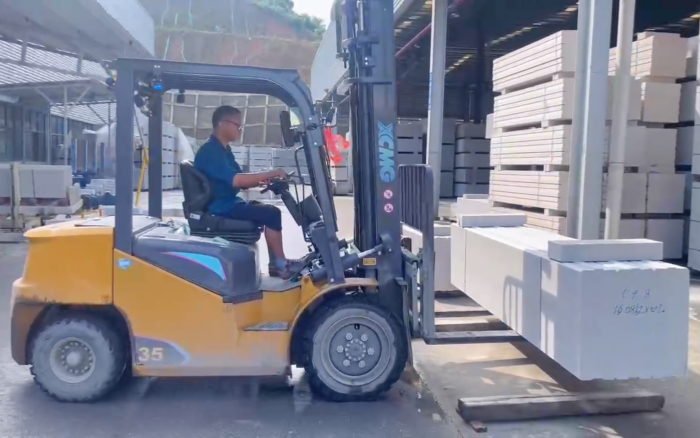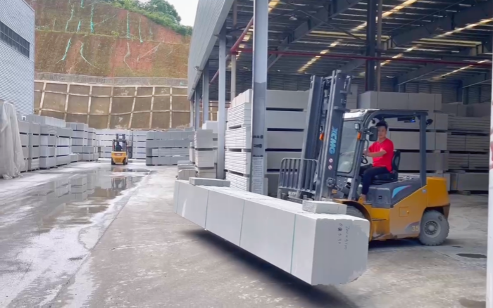 湖南某石材厂内,凯发k8一触即发叉车新 E 系列电动平衡重叉车,耀世登场!