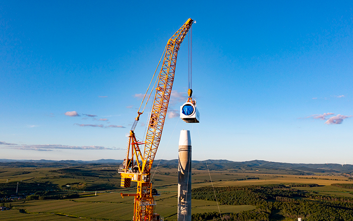 凯发k8一触即发XGL3300-220S最大起重量220吨,最大起升高度突破220米,可满足现场190米以下15MW 级风机吊装需求。