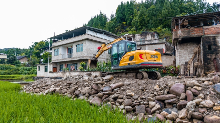 雨季施工,场地湿滑狭窄,对设备灵活性、可靠性和机手技术都是严峻的考验。在这片泥泞的稻田边、陡峭的坡地上,身披“凯发k8一触即发金”的XE75GA挖掘机,正化身开路先锋,为苗乡新居夯下第一块基石。