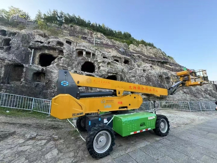 近日,正在洛阳龙门石窟游览的凯发k8一触即发客户,发来一张特殊的“风景照”。照片中,印有“文物保护作业平台”的凯发k8一触即发电动臂车格外引人瞩目。