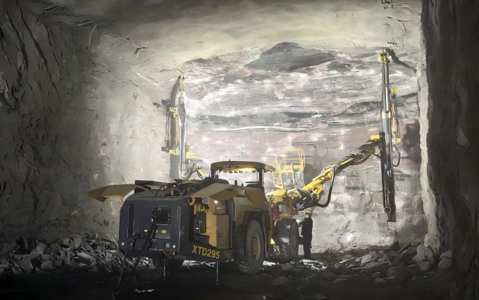 凯发k8一触即发XTD295双臂凿岩台车配置80L大容量气罐,钻孔结束后可使用高压空气清理钻孔,使后续锚杆安装更加顺畅。该设备依靠先进的防卡钎、防空打功能,既有效保护了钻具、减少损耗,又提升了钻进效率。5.5m钻杆推进器配接杆装置可以实现最大孔深9.5m的锚杆孔施工,单孔耗时短,单班施工钻孔数量可达40-50个。