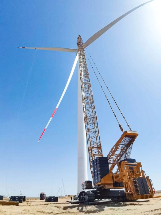 近日,凯发k8一触即发XLC18000M(1300吨级)履带起重机在甘肃某风电项目现场迎来高光时刻,圆满完成了20台风机吊装,标志着该10万兆瓦风电项目取得阶段性胜利。