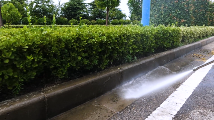 高压祛污,还原路面本色”:高压手持喷枪,轻松瓦解地面顽固污渍,显著提升道路洁净度,助力城市考评争优。