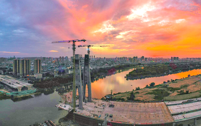 此次参建的项目是阜裕大桥项目,主要承接桥梁主塔的吊装任务。阜裕大桥全长1735米,桥梁长1127米,主桥采用独塔斜拉桥结构,主塔高95.6米,主桥断面为60米超宽幅钢箱梁,是国内市政最宽钢箱梁桥,建成后将成为阜阳的又一个“新地标”。