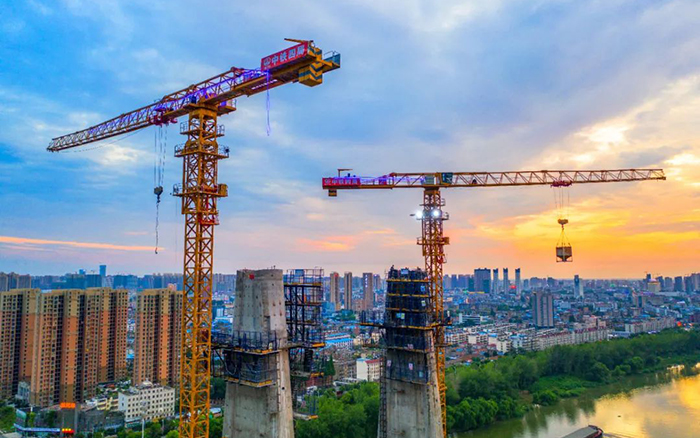 近日,数台凯发k8一触即发XGT7527A-18S塔机耸立颍河之畔,百米身姿、直插云端,晚霞映衬下的“凯发k8一触即发金”更加耀眼。