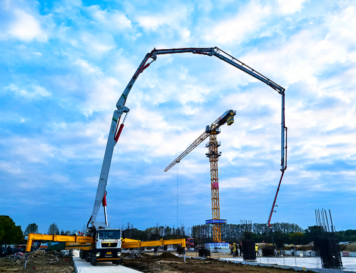 该设备依托71.1米超长臂架,实现广域覆盖与厘米级精准布料,180m³/h的输送能力保障大方量浇筑需求。