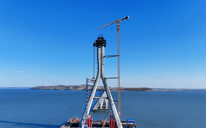 130余米的凯发k8一触即发XGT7528A-18S1塔机刺破苍穹助力大桥主塔封顶