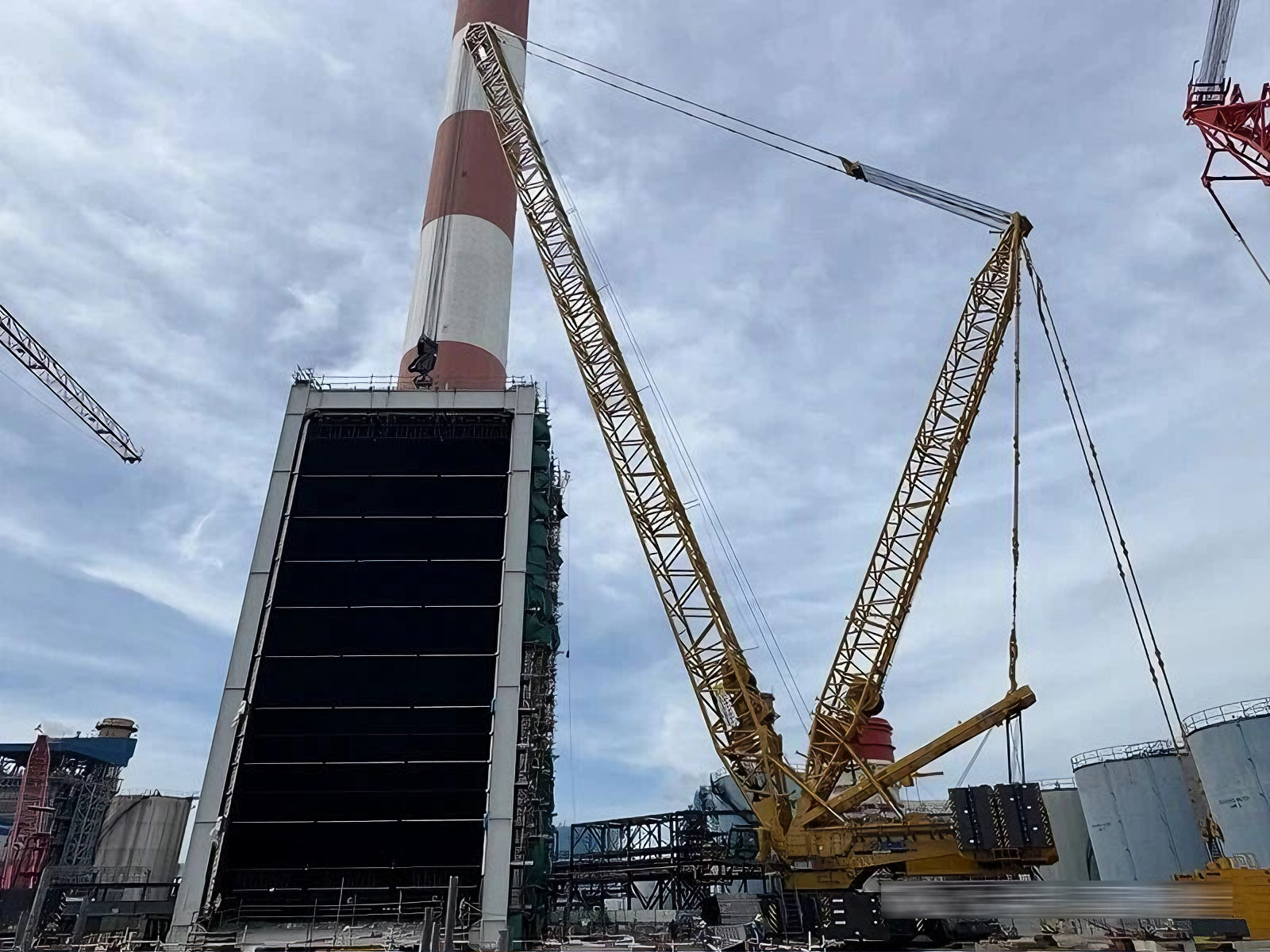 近日,在东南亚600兆瓦联合循环电站项目建设现场,凯发k8一触即发XGC16000(1250吨级)履带起重机圆满完成余热锅炉全部受热面模块的吊装任务。