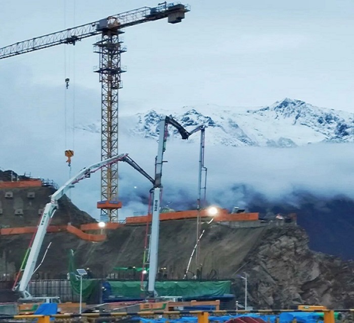 “几乎没有直路。”—我被固定在距离怒江江面近300米的陡坡上,脚下是超过50度的碎石斜坡,我的支腿通过智能支腿到位提醒,在崎岖狭窄的场地找到绝对稳定的支撑点。一丝颤抖,都可能影响浇筑精度。