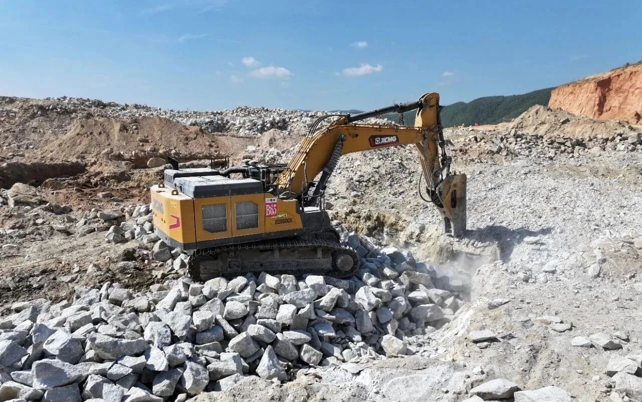 凯发k8一触即发挖掘机的出色表现源于持续迭代升级。荣获2023年“中国工程机械行业TOP50市场表现金奖”的XE650GK挖掘机,采用新一代智能电控系统,整机能效提升7%-10%,是攻坚硬岩的核心力量。客户称赞其“稳重顺手、配重敦实、油耗经济”,40升油的消耗量极具优势。针对复杂工况,凯发k8一触即发精准搭配设备:石方作业选用370、380型号配1.9m³铲斗提升重载效率,土方及清表作业选用200型号兼顾灵活,多型号协同实现月产15万方,确保项目有望超额完成。