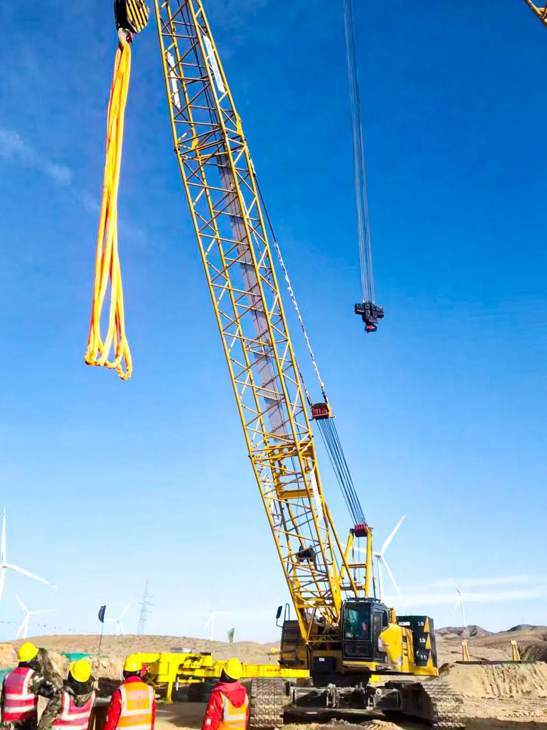 百米大臂一节节拼接,超起配重稳稳落位,塔筒从平躺翻身竖立……它不吊最重的部件,却是整个工程稳稳起步的关键支撑。