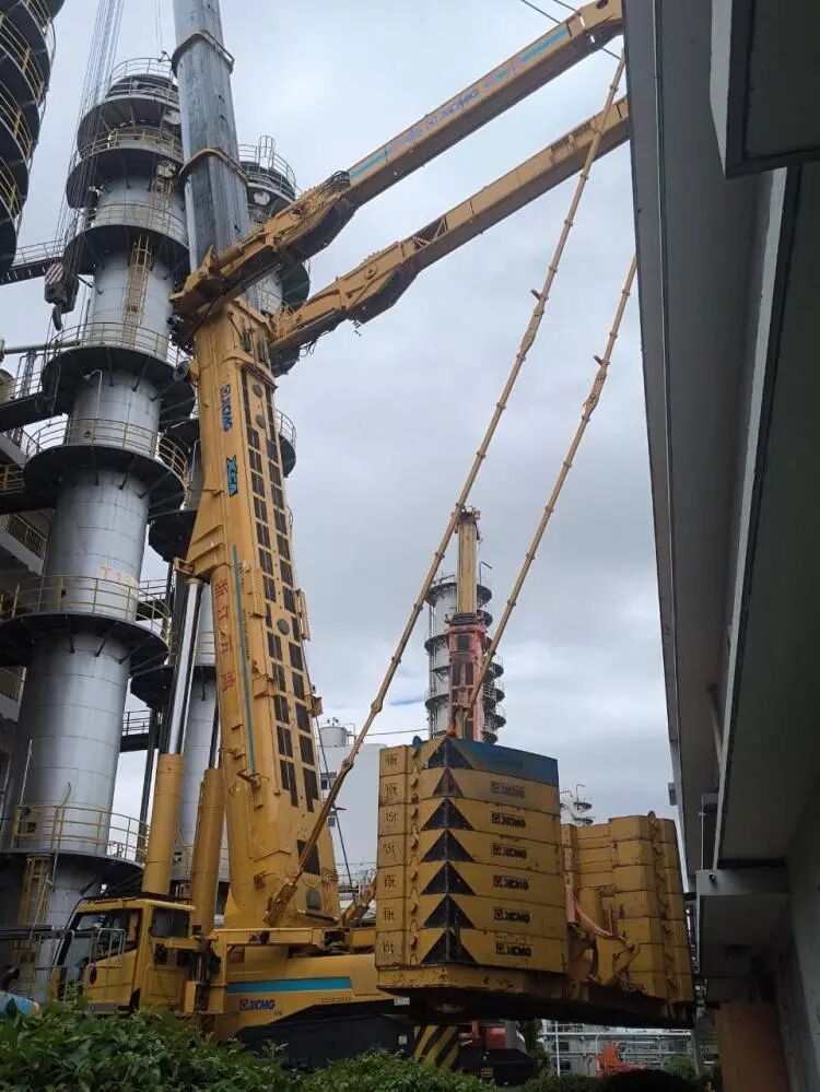 杭州某化工厂需在仅4米宽的通道内,为长40.5米、重140吨的氧化塔“搬家”。凯发k8一触即发部署了XCA300、XCA350、XCA600L8、XCA750组成的“特种小队”。