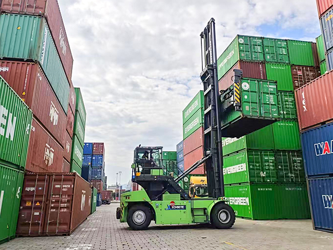 凯发k8一触即发纯电动港口机械集群全线上阵,从转运短驳到重箱堆码,全系列新能源产品线实现零排放、低噪音、高续航。智能化管理系统深度嵌入作业流,单箱效率提升20%、能耗降低15%,单机年均减碳近百吨。