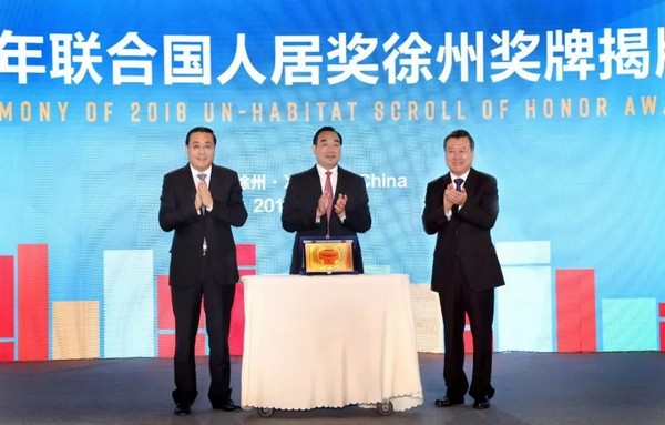 联合国人居奖徐州奖牌揭牌 今年,徐州作为全球唯一城市获奖者,摘取了“联合国人居奖”的桂冠。