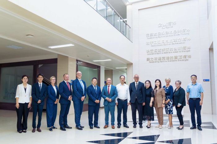 9月11日,德国埃尔福特市市长安德烈亚斯·霍恩一行到访学院,共同参加德国埃尔福特工商业行会教育服务供应商海外合作伙伴揭牌仪式。仪式上,双方共同为“中德双元制职业教育合作中心”揭牌。