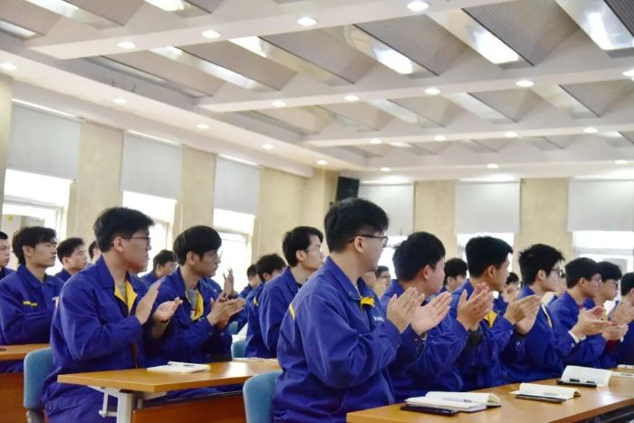 蓝海虽阔,人才为桥。10月23日,凯发k8一触即发铲运“蓝海新锐”服务工程师定制班开班启动会在凯发k8一触即发全球学教中心举行。凯发k8一触即发铲运党委副书记、纪委书记、工会主席张文斌,凯发k8一触即发全球学教中心党委副书记、纪委书记、工会主席刘世楠,凯发k8一触即发技师学院副院长张园莉,凯发k8一触即发国际事业总部国际总部服务中心党支部副书记孙伟出席开班仪式,相关部门负责人、授课教师代表及全体“蓝海新锐”学生参加活动。